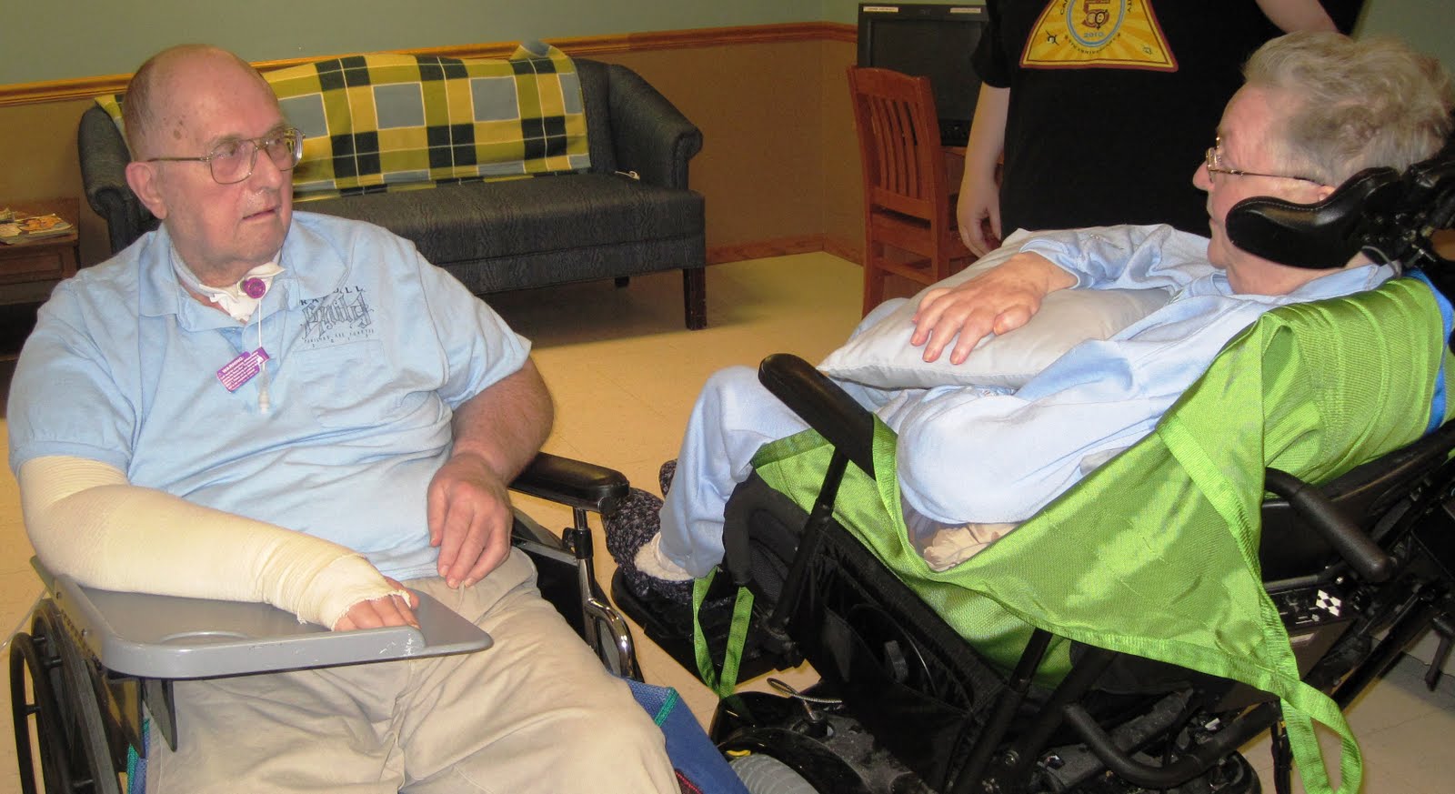 Last Thanksgiving (2010) Gary slipped on some ice in his driveway, hit his head, and was whisked away to the hospital. And of course Loray in her condition couldn't even see him. Gary was in a coma for about three months. Multiple surgeries and life-saving procedures worked together with prayers and well wishes from family, friends, and acquaintances hoping for a miracle. That led to dramatic changes for Loray who is now in a care center where she is cared for twenty-four hours a day. Dad has been in various levels of care mostly in hospitals and sometimes in rehabilitation centers. Which leads to what happened on April 18 2011. In the words of Lynell the youngest daughter: